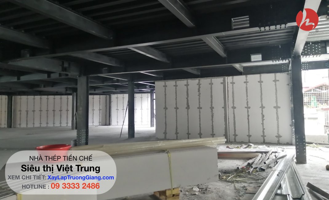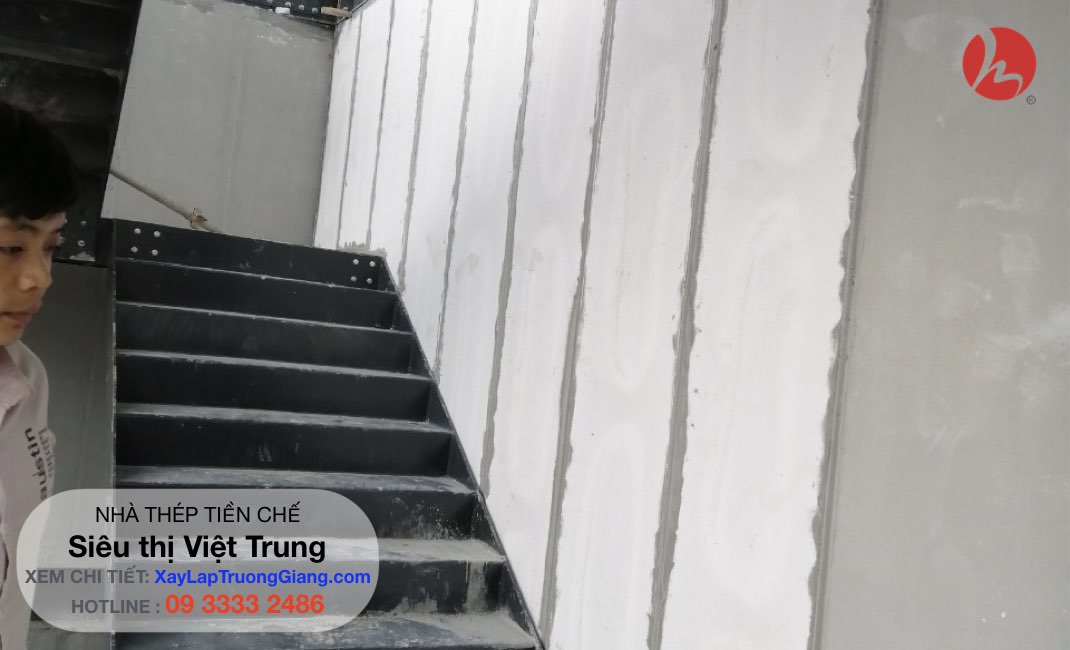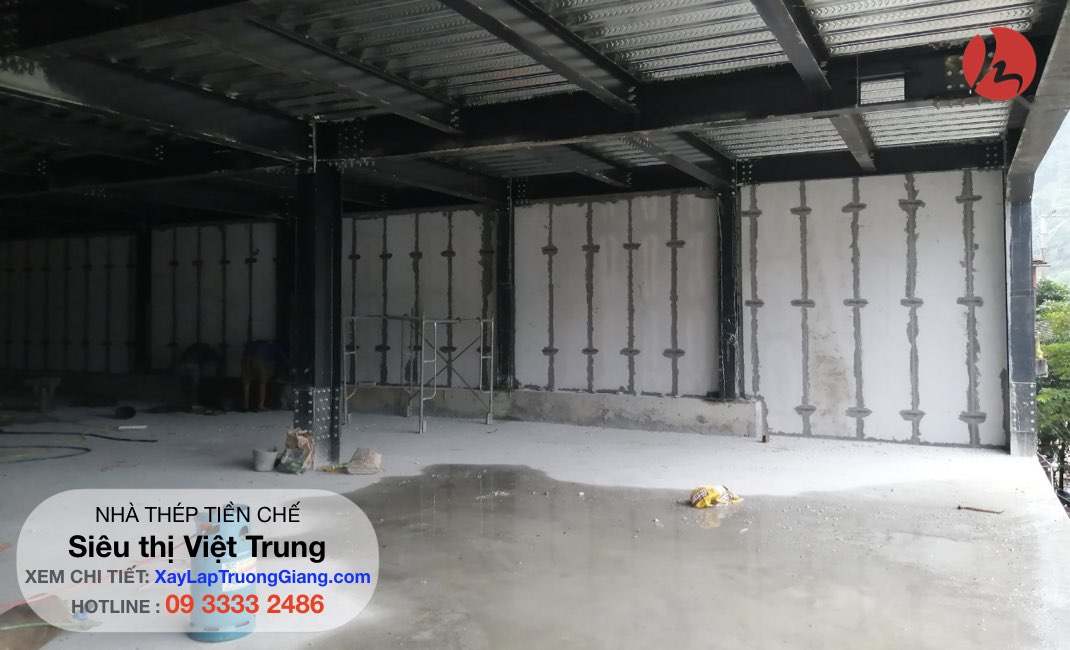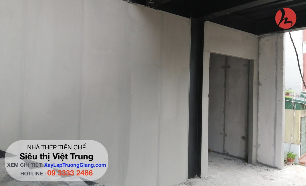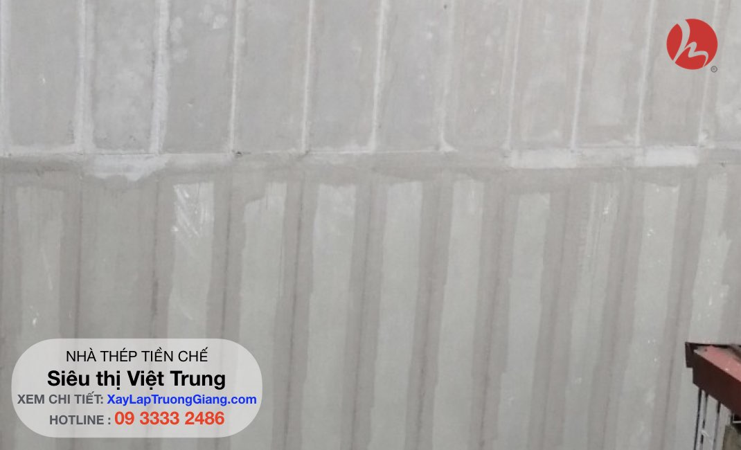 >> Hình ảnh phần tường ALC nhà khung thép.